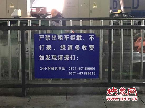 然而记者在东站走访过程中,却没有看到监督站或是工作人员维持秩序,仅仅在防护栏杆上挂有蓝色牌子,写着“严禁出租车拒载、不打表、绕道多收费”的字样,并在下面留了两个监督举报电话。