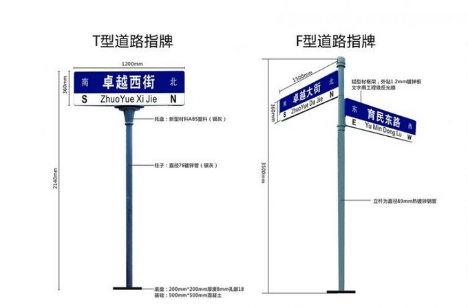 T型路名牌,F型路名牌的